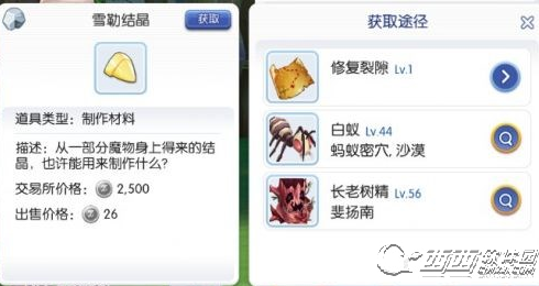 1.击杀白蚁、黑蚁、长老树精获取雪勒结晶。白蚁黑蚁建议玩家40级左右再去打,在梦罗克右边的苏特拉特沙漠和蚂蚁洞穴;长老树精建议玩家55级左右再去打,在斐扬南部。击杀魔物掉落雪勒结晶的几率比较低。
