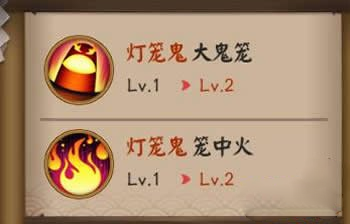 准备升到4星的灯笼鬼技能是111,狗粮里面有一个灯笼鬼是刚才上图喂的122,加上另外两个灯笼鬼。
