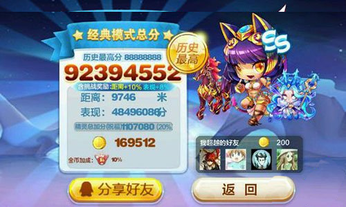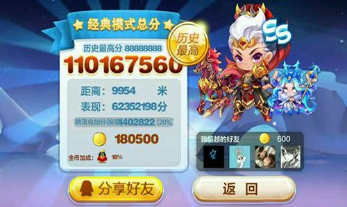 赤兔的技能是超级奖励外得分,因此这款坐骑更适合玩破坏流,宠物选择暴风雪女或者命运之神,宝物选择有破坏得分加成的即可,精灵采用绿巨熊或者小丑熊。在超级奖励关卡外放技能,一套技能可以获得400~500W得分,3300米左右就可以获得2000W分,得分效果是相当惊人的,但是吕布搭配赤兔的阵容不适合跑长距离,因为速度太快,触发吕布技能后画面太杂。