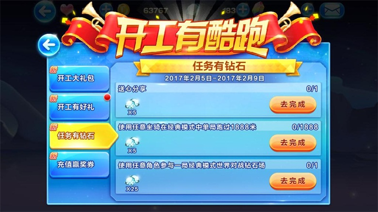 2、使用任意坐骑在经典模式中单局跑过1888米,送钻石*5