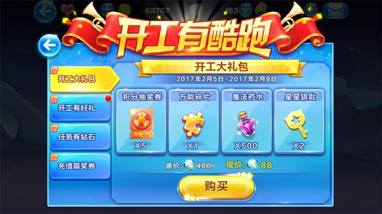 活动内容:活动期间,酷跑大礼包限时打折售卖!
