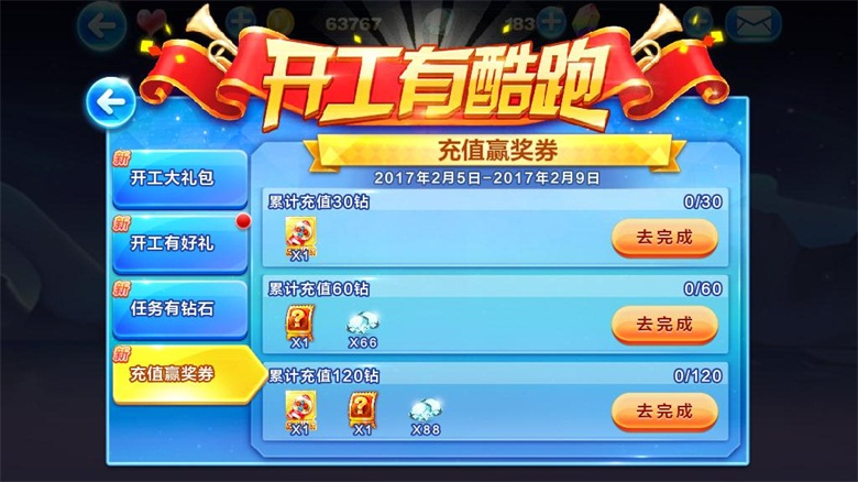 3、累计充值60钻石,送黄金奖券*1+钻石*66