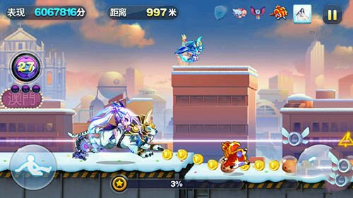 3、发动技能,角色巨化冲锋并变化金币,短时间内,可再次发动——速度提升,破坏加分,但变化金币的概率下降