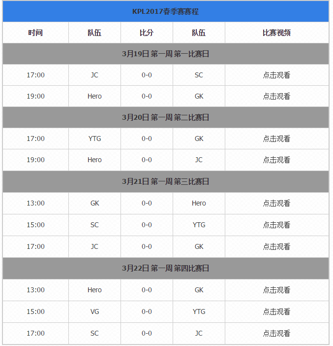 王者荣耀2017kpl春季赛赛程一览(仅供参考,最终赛程待官方公布)