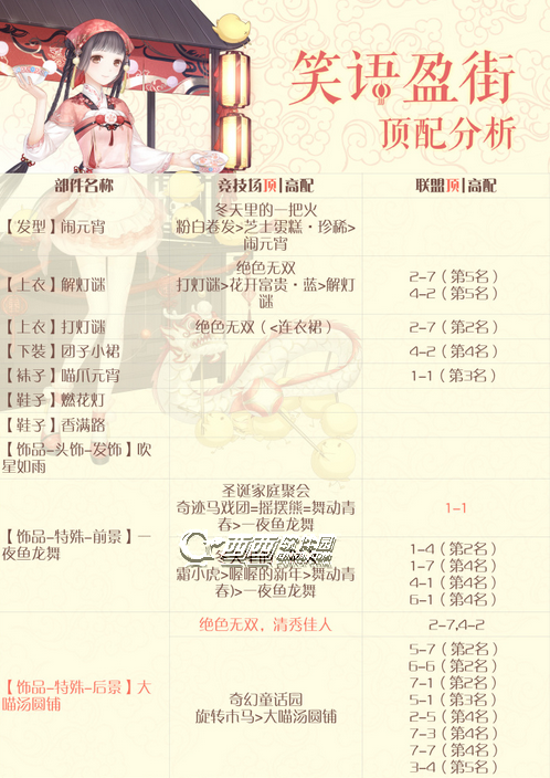 首页 → 安卓游戏资讯 → 安卓游戏攻略 → 奇迹暖暖元宵节套装笑语盈街有哪些顶配 笑语盈街顶配解析