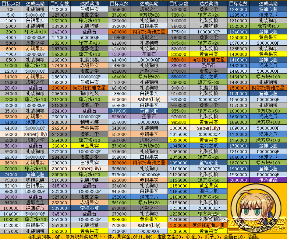 saber war点数达成目标奖励