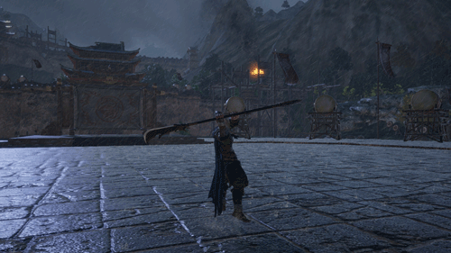 迎风起武,拒雨而行——不同于晴日,风雨之中的一招一式将与更丰富的物理因素关联,提刀挥砍,刀尖雨水顺势挥洒;刀枪落处,水花四溅,雨雾淋漓。《战意》团队总是在最不经意间,给人留下最用心的视听体验。