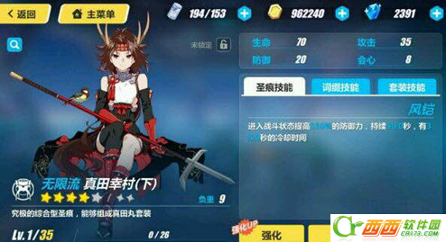 风铠:进入战斗状态提高300%的防御力,持续15.3秒,有35.0秒的冷却时间