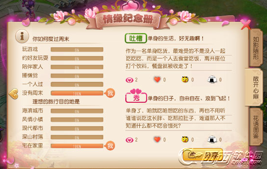 2.参加情人节活动来丰富情缘纪念册的内容,纪念册有3个页签,对应情人节的3个活动;