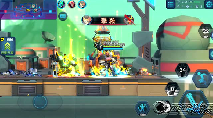 《亚灵战记》的地图依然是分为三路。但与常规的MOBA游戏却有着很大的区别,似乎并不是分配人员到各路去发展,更像是用来GANK。另外,游戏中还有中立生物的设定,抢杀即可获得Buff加成,整体玩法还是和常规MOBA游戏类似。