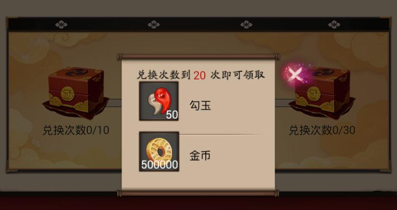 每兑换10次金币奖励额外多50w外加50勾玉