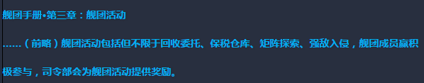 作为一名称职的AI娘,接下来爱酱会为舰长讲解舰团手册中关于活动部分的内容,请舰长务必认真听讲,爱酱可是会随时抽查的哦=3=