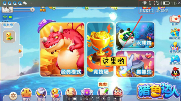 首先,请让我们登陆客户端。找到右上角的“首充特惠”。(啊~手机的信息栏遮住了一点呢~)
