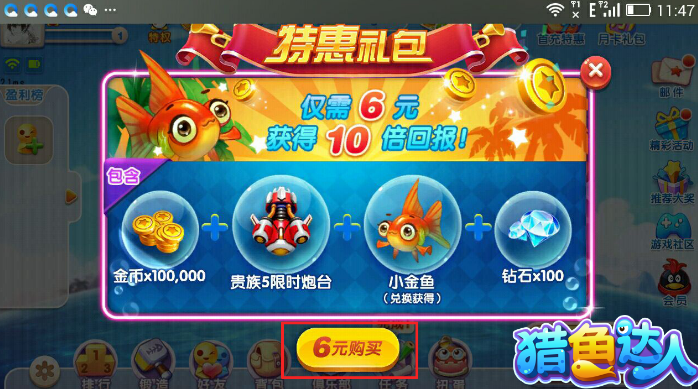 腾讯猎鱼达人首充划算吗,猎鱼达人首充性价比分析。腾讯猎鱼达人手游中有首充特惠哦,小伙伴进行首充是有优惠的,购买完成之后就可以获得100钻石和100000金币,很多玩家都在考虑要不要进行首充,腾讯猎鱼达人首充划算吗,西西小编来为大家分析猎鱼达人首充性价比。