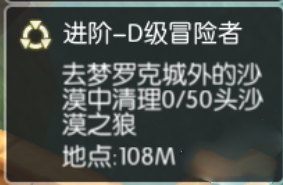 D级冒险家进阶任务当冒险等级达到20级时,在首都冒险家NPC处自动出现一个任务.