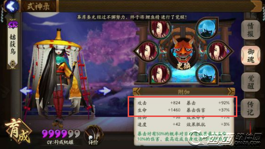 暴击伤害的提升大于暴击的提升,但是局限于不用针女的式神(单段式神)。