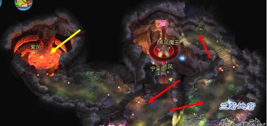 2.黑风洞 跟兰若一样,去图中的位置蹲点,黄色箭头位置5线.7线高几率刷新