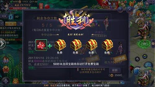 在120s内击败对手即可成功夺得宝石碎片,同时还会奖励一次免费开启宝箱,和一次花费钻石开启宝箱的机会。开启宝箱可能获得装备材料,经验药剂等珍稀道具。