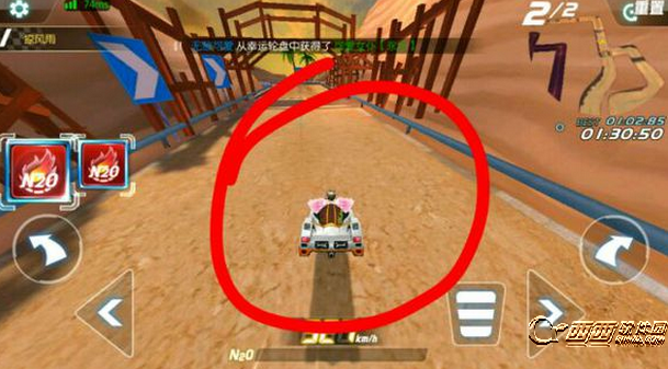 落地喷指的是赛车从空中落地时,可以向前冲刺的一个状态。和空喷相似,落地喷需要在赛车刚接触地面的时候,任意点击屏幕一处,就能成功触发。
