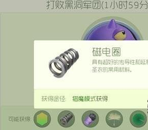 其实,卡磁电圈没有什么教程的,有的只是小编的一些心得,那就是开圣殿魔盒,基本上圣殿魔盒开出来的都是磁电圈,而且数量还不少,大概有3个左右,数量也还是不错,而且你打猎魔模式,一般掉落的圣衣材料,也多半是这个,所以总的说来,磁电圈还真的是比较容易获得的,球宝们自己也感觉到了吧。