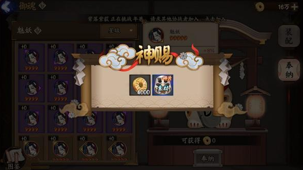 出售四星及以上御魂时有几率出现神赐带来的额外奖励,包括了勾玉、觉醒材料、式神碎片、达摩碎片、符咒、结界卡(见过四星斗鱼卡~)、金币