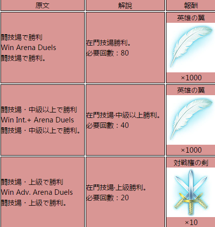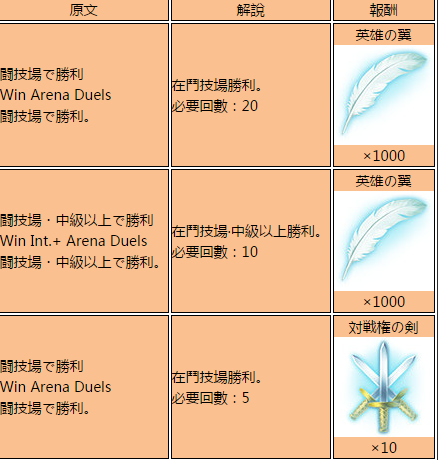 斗技场任务完成条件及奖励翻译一览