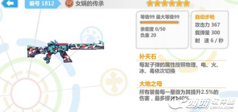 “补天石”使得“女娲的传承”拥有5种元素,这类武器在后期复杂的关卡越来越适用,灵活的属性切换可以应用于大部分关卡,针对物理、元素免疫,还能割草阿尼拉。攻击方式也非常优秀,相似于绯狱、晨星这类步枪武器,穿透无递减的X轴的高频AOE伤害,在竞速图有很强的割草能力。