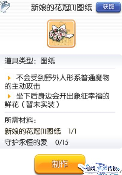 新娘的花冠是目前情人节活动,心动开放制作的一款限时头饰。属性效果是【不会受到野外人形系普通魔物的主动攻击】【坐下后身边会开出象征幸福的鲜花(暂未实装)】。