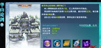 华山论剑的新一届的赛制是单人PK赛制,出战时候可以携带已经上阵的所有同伴,将对手主角和同伴全部击败的一方获胜,如果在规定时间没有决出胜负就以输出的伤害值高低论输赢。