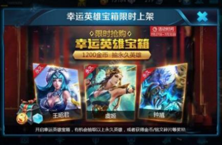 现在玩家最关心的肯定都是1200金币宝箱活动了,因为有概率会抽到永久英雄,包括不知火舞和李元芳两个,不过亲测想要抽到永久英雄的概率真的非常非常低,除了少部分能幸运中奖以外,大部分都是抽到垃圾东西,而且这个活动主要是让玩家使劲花金币的,等新英雄上线没有足够金币了刚好点券又有打折,就直接花钱买英雄了,官方的套路~所以不建议去抽。