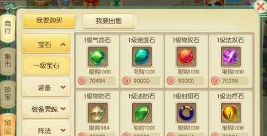 流通元宝、银币,是玩家与系统进行交易的平台。玩家可在此购买各种珍贵道具。