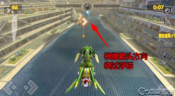 在比赛过程中,通关时间越短,星级评分越高。而更重要的原因,按照浮标提示绕过通过阻碍。大部分萌新就是在这里未按照箭头绕过浮标,导致无法通关。只要我们按浮标箭头方向绕过浮标,这场比赛就稳一大半了!