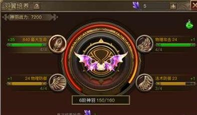 羽翼的属性可以通过消耗灵羽道具进行培养,羽翼加成生命、攻击、物理防御、法术防御等属性,玩家可以自主选择培养的属性。每一条属性会有对应的成长上限,当其中一条达到成长上限时,只能选择其他属性进行培养。