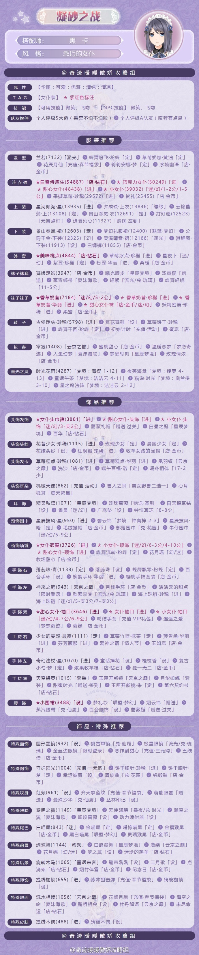 奇迹暖暖联盟搭配战乖巧的女仆怎么搭配,凝砂之战乖巧的女仆搭配攻略。奇迹暖暖搭配战的活动上线后,每个联盟都有本周要搭配的风格啦,有的联盟的风格是乖巧的女仆,玩家需要搭配高分获得奖励,奇迹暖暖联盟搭配战乖巧的女仆怎么搭配,西西小编为大家带来凝砂之战乖巧的女仆搭配攻略。