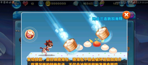 旗袍小萌发动技能,能召唤蒸笼包,蒸笼包不但会破坏还能加高能量!吃满足够的特殊包子,不仅会冲刺还能触发美食雨。