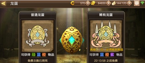龙蛋系统中分为普通龙蛋和稀有龙蛋,两者所需要的货币以及开出来的物品的品质也是不一样的:
