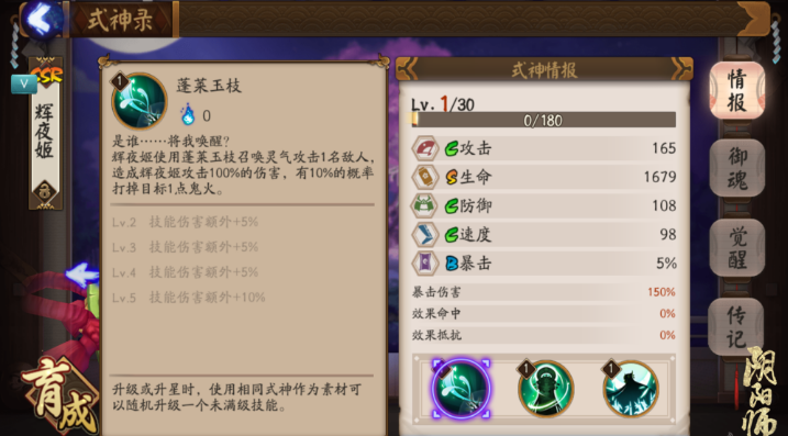 在辉夜姬御魂搭配上,如果想补“机率鬼火”的短板,就选择4火灵+2生命御魂,不用为没火发愁。