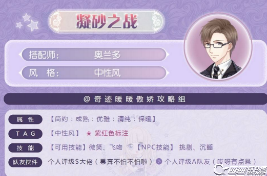 奇迹暖暖十级联盟的搭配战npc是奥兰多,分别有两种风格:中性风和晚礼服,那么十级联盟这两个凝砂之战主题要如何搭配S,下面就和西西一起来看看详细攻略吧!