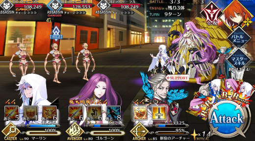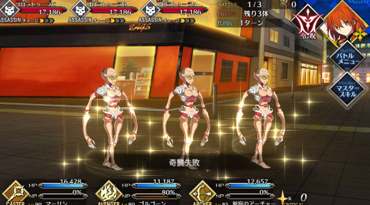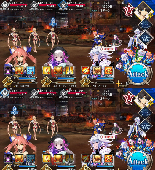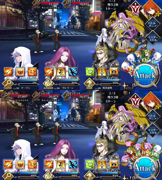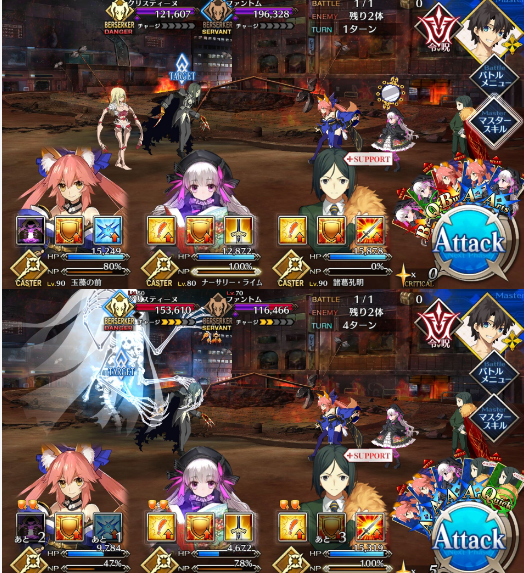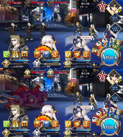 17-2 注:①莫里亚蒂持有特殊技能:我方暴击星星减少; ②魔神准普通攻击为多段群攻,宝具为单体 [图片丢失,待补充] Archer莫里亚蒂+Avenger魔神柱 18-1 注:①Boss莫里亚蒂有3管HP,Boss大幽灵特殊技能:我方单体NP减少100%; ②本关场地技能:我方每回合增加20NP