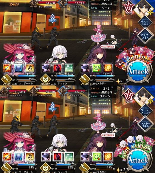 17-1 注:①本关场地技能:每回合赋予我方单体技能封印or宝具封印状态,持续一回合 ②Boss第一管HP耗尽后,每回合再对我方单体进行一次强化解除。