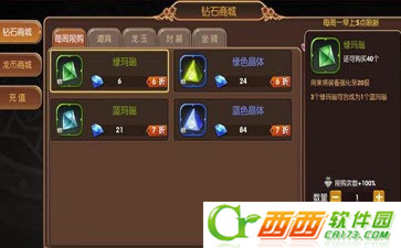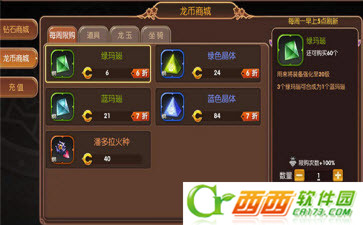 钻石是通过用人民币充值才能得到的,能用于游戏内的绝大部分消费,在钻石商店里购买强化材料也不例外。钻石商店跟龙币商店一样,每周都有限量销售的材料,这个是必买的,毕竟能省下部分钻石。