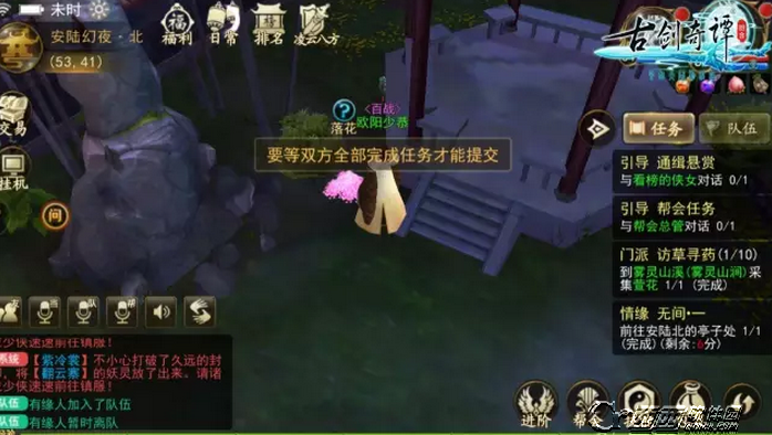 有些任务需要双方全部完成,才能提交,然后继续进行其他任务,如果有一方完成任务,另一方没有完成,没有完成任务的玩家会收到提示,告知另一半在等他完成任务。