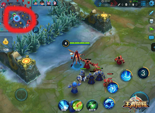 王者荣耀大乔大招在草丛放大招我们是看不到的,但是在左上角的小地图上,我们可以看到敌人大乔释放了大招!但是小地图上标记的位置是错的!