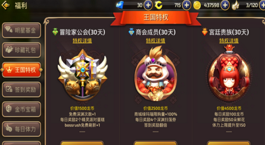 龙之谷手游月卡选哪种好,龙之谷手游各月卡性价比分析。龙之谷手游中有三种月卡,分别是冒险家公会、商会会员及宫廷贵族,其价格、特权都是不同的,很多玩家都在纠结选哪个好,下面西西小编来为大家分析龙之谷手游各月卡性价比。