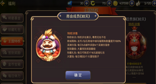 推荐理由:限购数量提升,深渊扫荡卷,对于不喜欢刷图喜欢做商人的玩家们,这个会员你们就值得一买了!如果想玩刷图的玩家,那还是推荐冒险建公会!