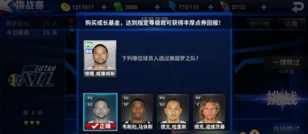 王牌NBA的挑战赛每日有不少的答题的任务随机选出了答题,答对了有经费一千的奖励,很是诱人,但是很多小伙伴还是会努力答题,但是也有难免会答错,那么在王牌NBA中球星答题任务的答案是什么?一起来看看王牌NBA球星答题任务的答案汇总吧