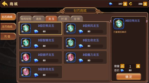 小康玩家每个月肯定会开3个特权服务,那么每周商城里能买折扣绿玛瑙的数量会比没开服务的同学多了一倍。这些玛瑙一定要都买了,后期强化能明显拉开等级差距,不要小看每次强化的那几十点战力,关键是强化加的属性都是很有用的。30级开始可以购买蓝色玛瑙,蓝色玛瑙石7折,这个也推荐多买些;而到40后则可以8折购买橙玛瑙,我个人不推荐买橙玛瑙,理由就是一般的装备制作速度有限,而且价格昂贵,慢一周强化到50对我们小R玩家来说也不一定是件坏事。