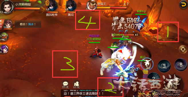 我图片所标记的1、2、3、4这四个方位出现四条凤凰,所以要尽快进行解决主怪。主怪死了就赢了,如果主怪不死的话那就有点难了。