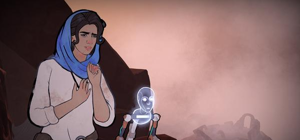 当然,Inkle 之前推出的《巫术》(Sorcery)系列同样精彩,但是《80天环游地球》是让他们真正走向大众的作品。经历了巅峰时期,Inkle 在下一款作品中必须投入更多的心力,才会获得与之前的成就相衬。趁着 GDC 游戏者开发大会吸引注意力的好时机,Inkle 曝光了最新的作品《苍穹之上》(Heaven's Vault)。按照官方的说法,《苍穹之上》是一款“将开放世界冒险与角色驱动的绘画小说合二为一”的游戏,虽然没有提及到文字游戏的概念,但依然是 Inkle 拿手的游戏书的操作模式。