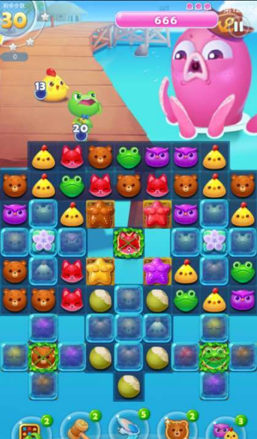 3、比魔力鸟更厉害的特效——神奇鸟!一次可以消掉两种颜色的小动物哟~是不是瞬间就爱上它了~